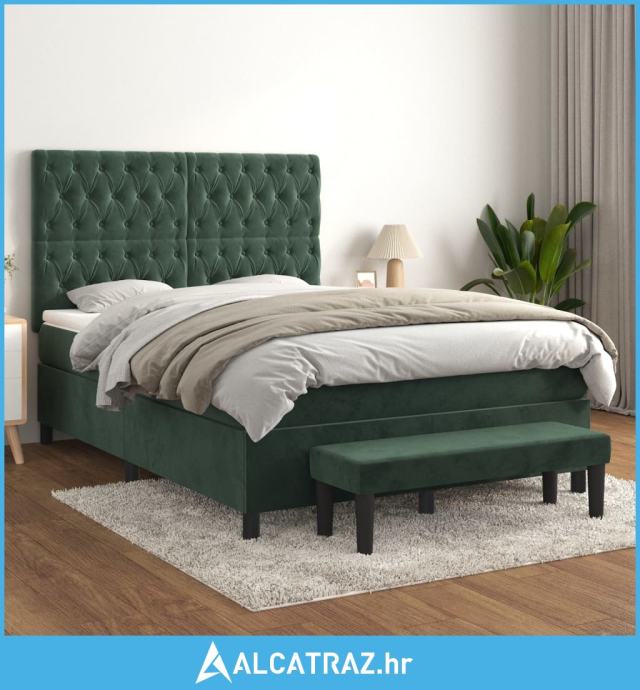 Krevet s oprugama i madracem tamnozeleni 140x190 cm baršunasti - NOVO