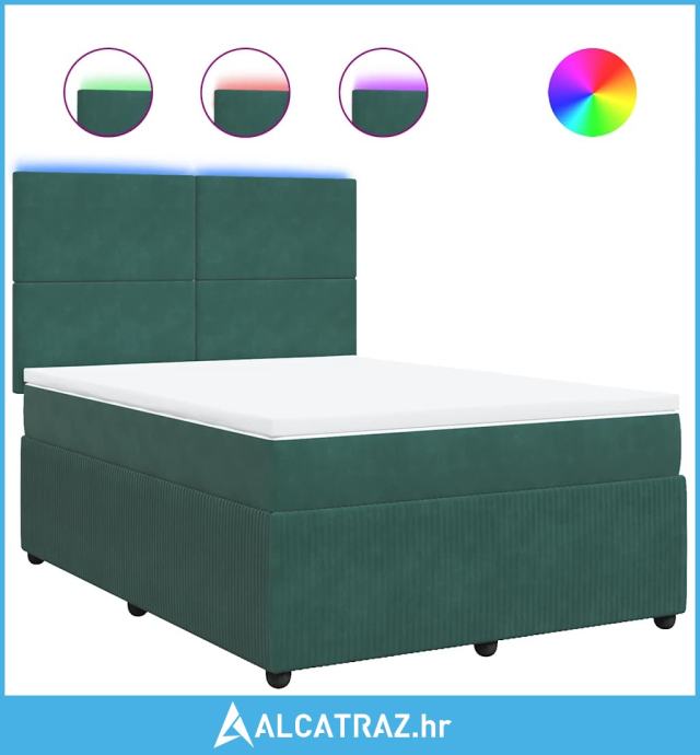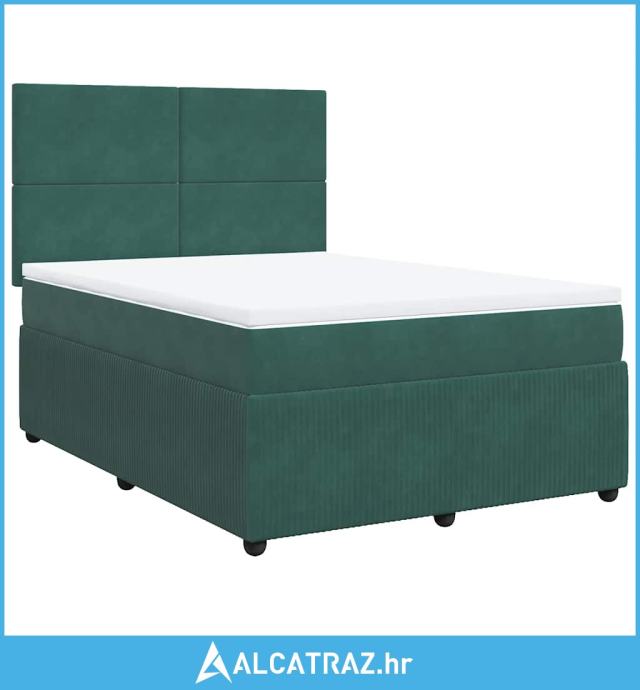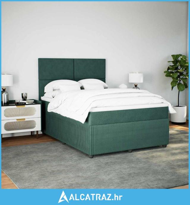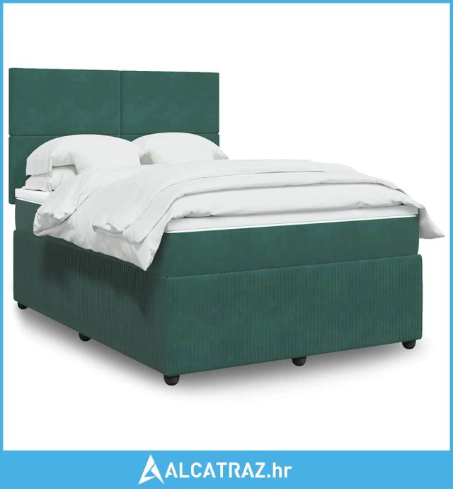 Krevet s oprugama i madracem tamnozeleni 140x190 cm baršunasti - NOVO