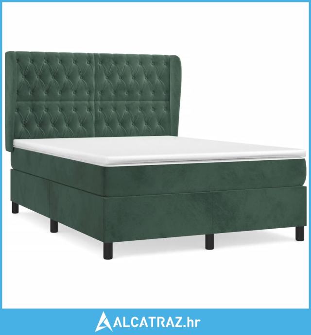 Krevet s oprugama i madracem tamnozeleni 140x200 cm baršunasti - NOVO