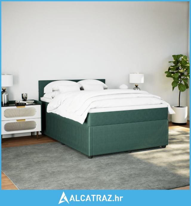 Krevet s oprugama i madracem tamnozeleni 140x200 cm baršunasti - NOVO