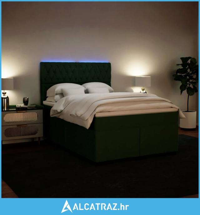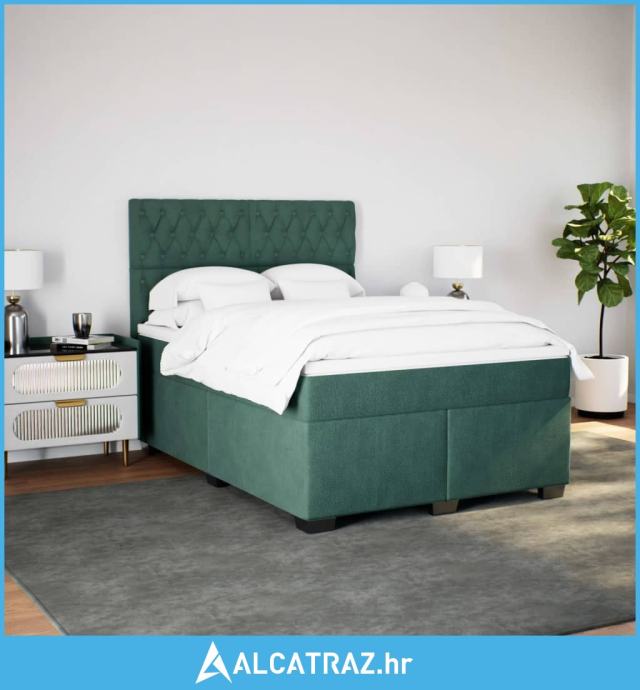 Krevet s oprugama i madracem tamnozeleni 160x200 cm baršunasti - NOVO