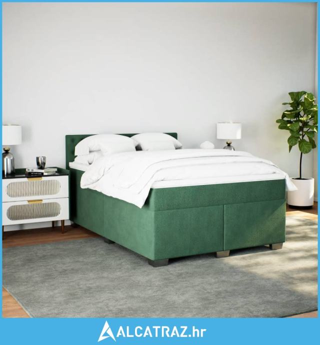 Krevet s oprugama i madracem tamnozeleni 160x200 cm baršunasti - NOVO