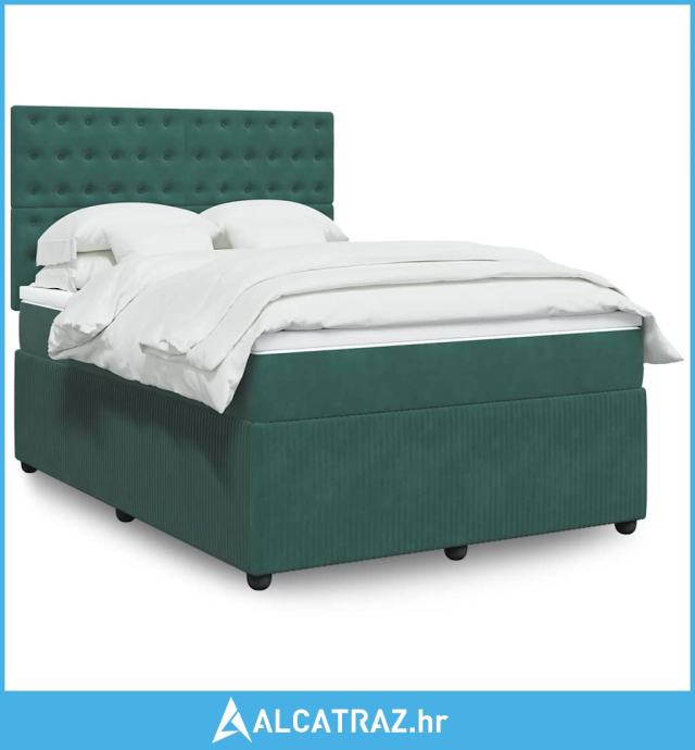 Krevet s oprugama i madracem tamnozeleni 160x200 cm baršunasti - NOVO