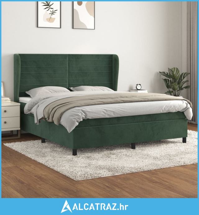 Krevet s oprugama i madracem tamnozeleni 160x200 cm baršunasti - NOVO