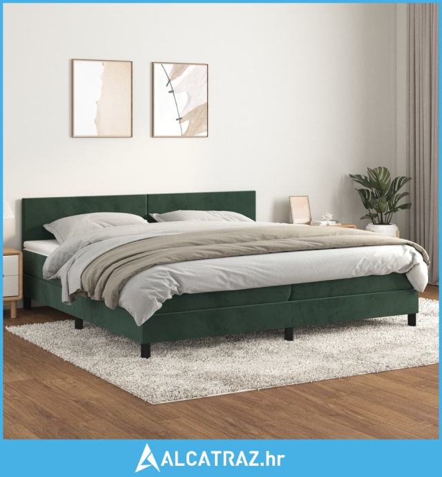 Krevet s oprugama i madracem tamnozeleni 200x200 cm baršunasti - NOVO