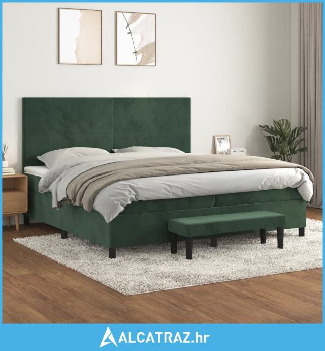 Krevet s oprugama i madracem tamnozeleni 200x200 cm baršunasti - NOVO