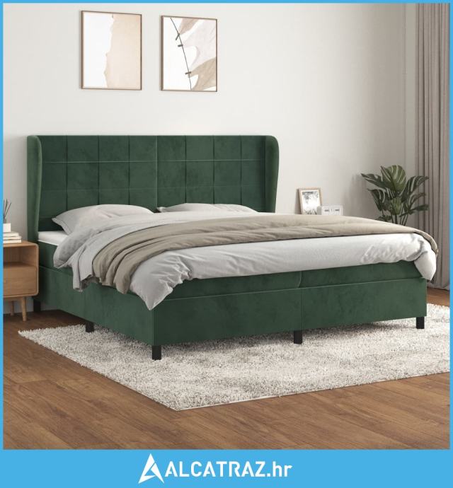 Krevet s oprugama i madracem tamnozeleni 200x200 cm baršunasti - NOVO