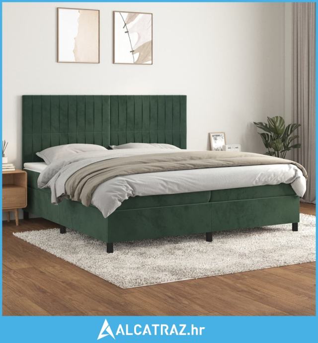 Krevet s oprugama i madracem tamnozeleni 200x200 cm baršunasti - NOVO