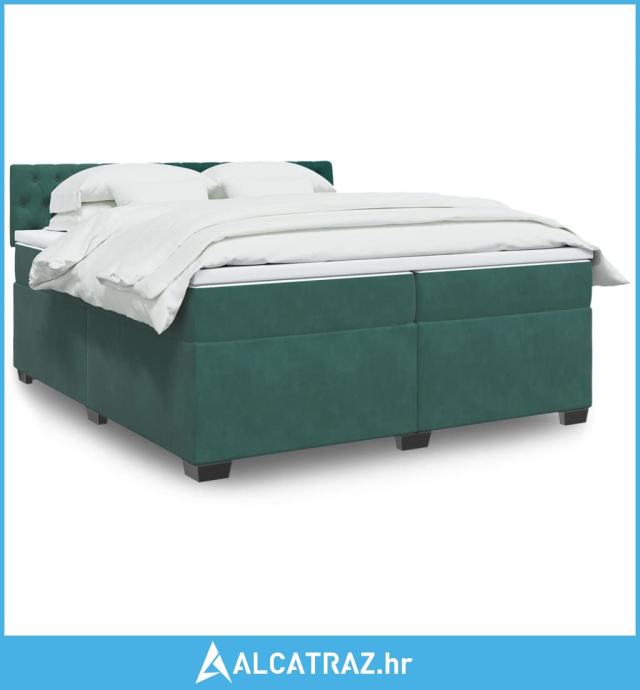 Krevet s oprugama i madracem tamnozeleni 200x200 cm baršunasti - NOVO