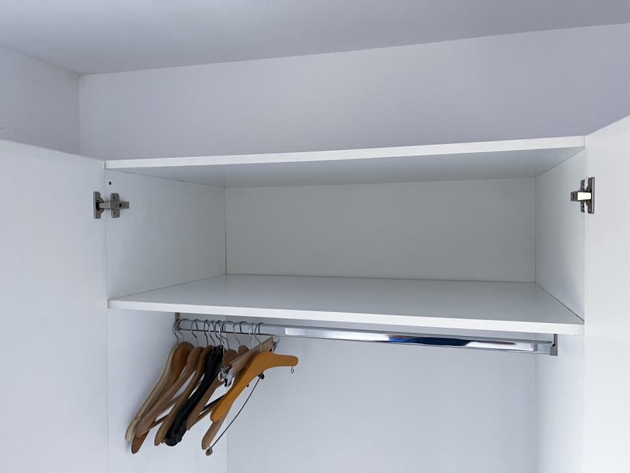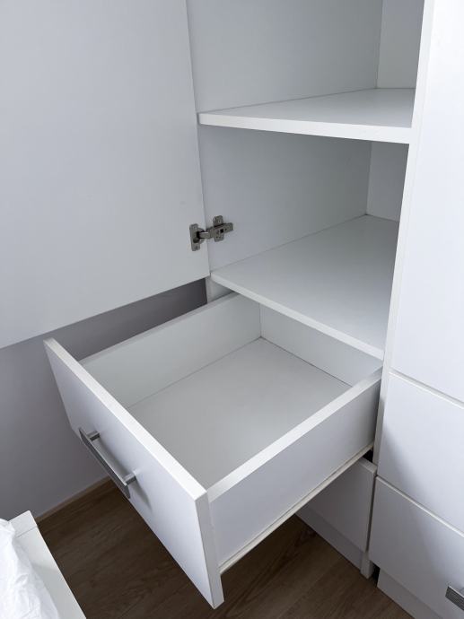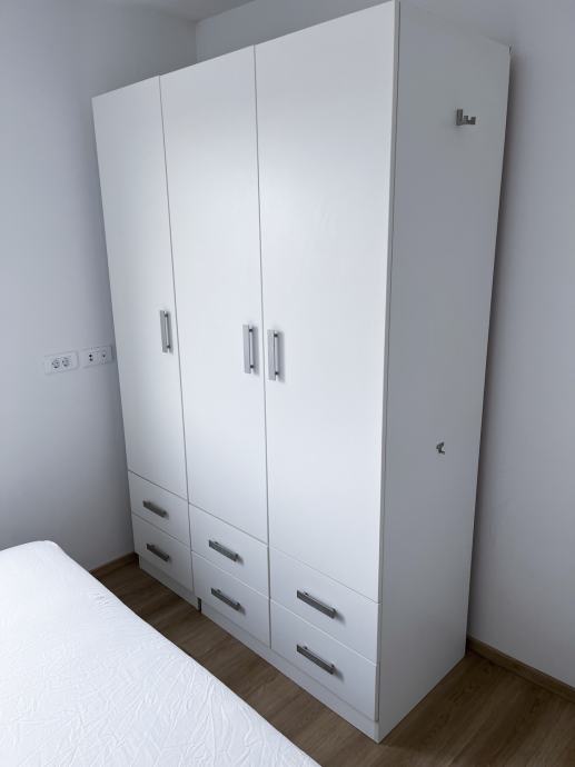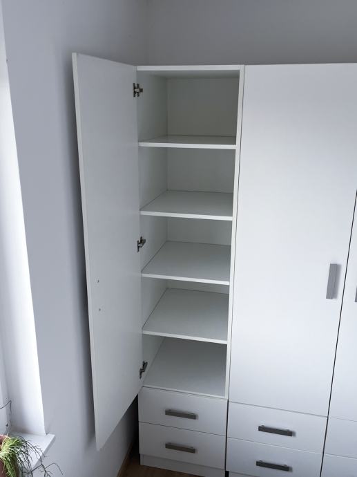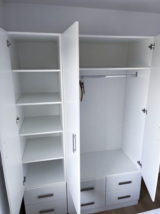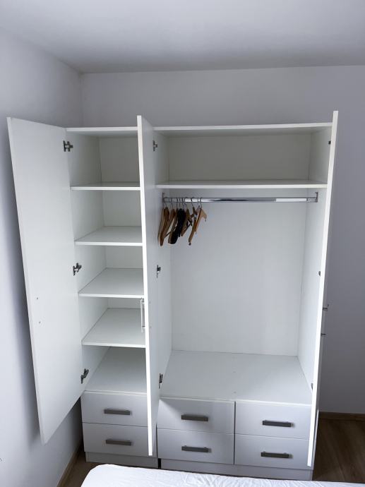 Ormar ima šest identičnih ladica i sastoji se od dva dijela: lijevog, užeg dijela te desnog, koji ima dupla vrata i garderobnu cijev.