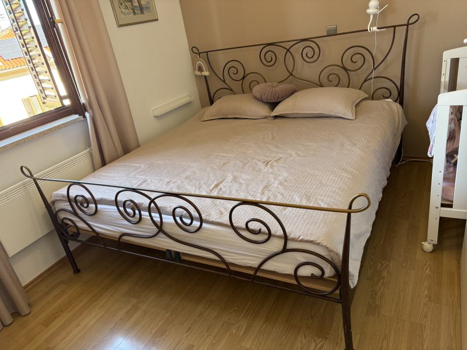Prodajem krevet i noćne ormariće od željeza. Krevet je 210(D)x186(S)x122(v). U cijeni su i drvene podnice. Krevet je sada razmontiran (lako se prevozi)