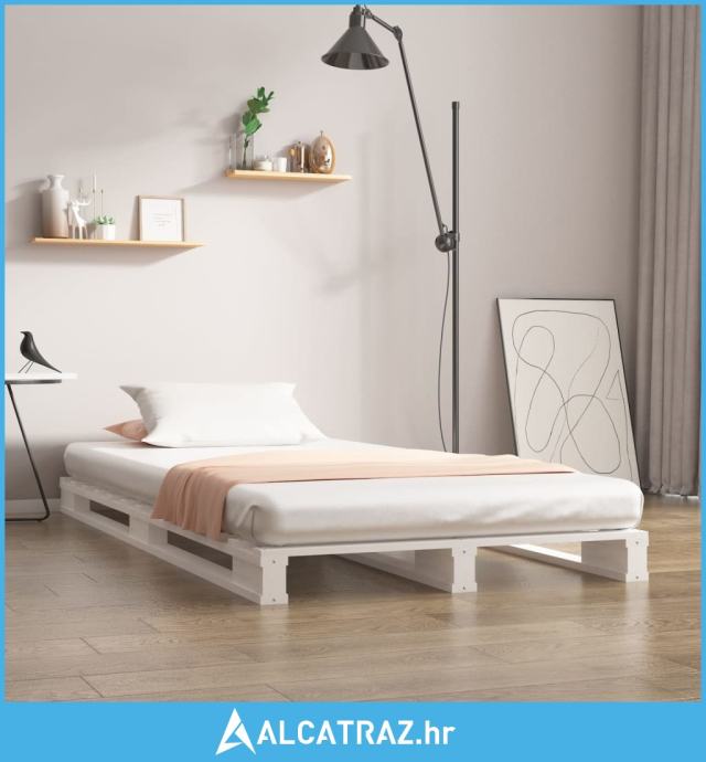 Krevet od paleta bijeli 75x190 cm od masivne borovine mali - NOVO