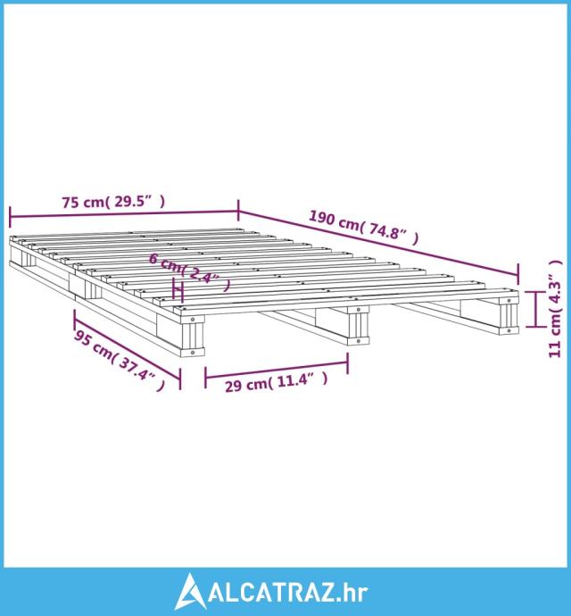 - Ovaj okvir kreveta prikladan je za madrac dimenzija 75 x 190 cm (jednokrevetni 2FT6).