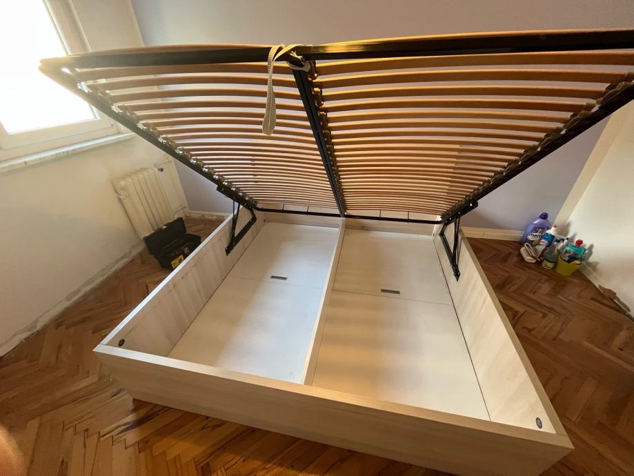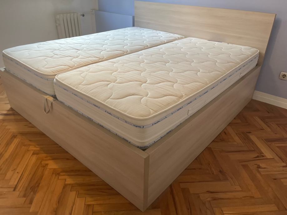 Prodajem vrlo kvalitetan krevet s podiznom podnicom, Lineaflex, dimenzije 160x190 s madracima Lineaflex Azalea u odlicnom stanju. Dvostruki iveral, vrlo masivan i cvrst. Kvalitetna, cvrsta podnica s plinskim podizacima. Osjetno kvalitetniji od kreveta iz Ikea-e s podiznom podnicom.