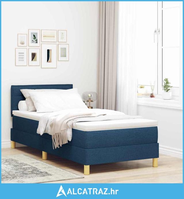 krevet s podnicom i madracem plave boje 100x200 cm tkanina - NOVO