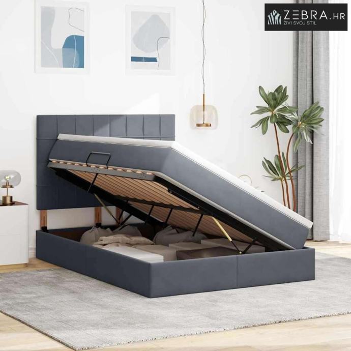 Krevet s madracem i skladištem Tamno siva 140 x 190 cm Baršun