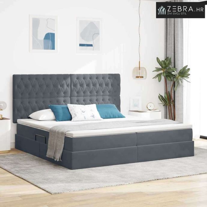 Krevet s madracem i skladištem Tamno siva 200 x 200 cm Baršun