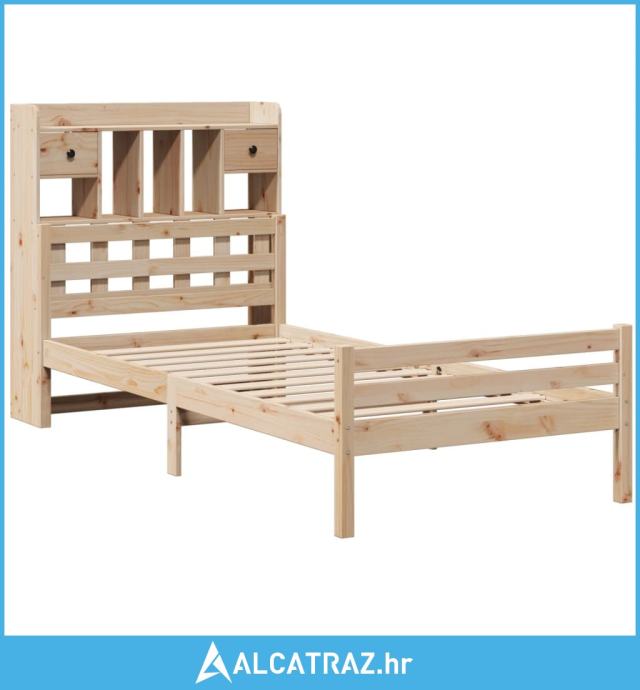 Krevet s regalom za knjige bez madraca 100 x 200 cm od borovine - NOVO