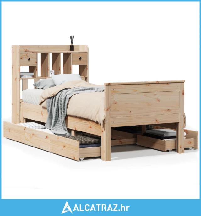 Krevet s regalom za knjige bez madraca 100x200 cm borovina - NOVO