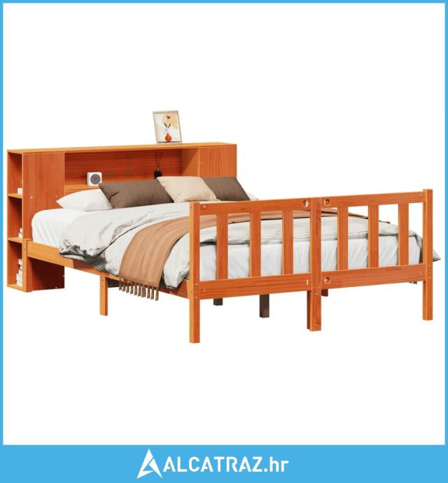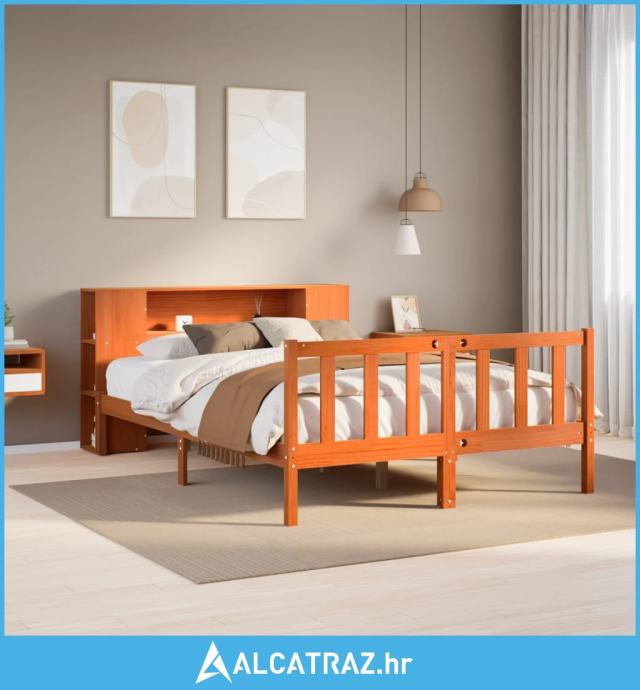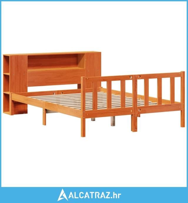 Krevet s regalom za knjige bez madraca 120 x 190 cm od borovine - NOVO