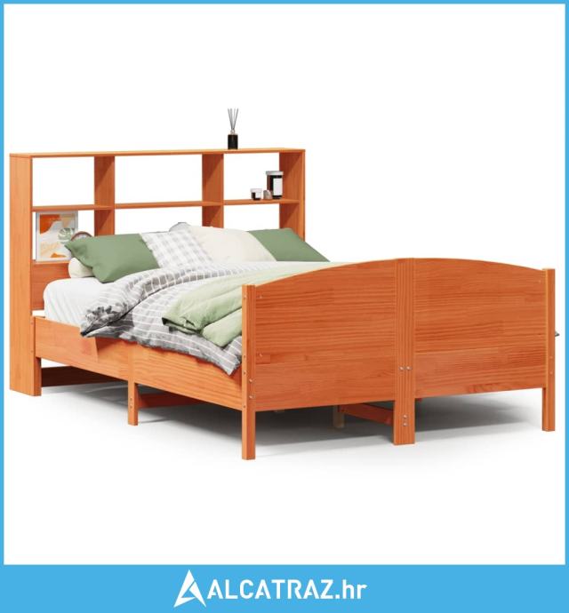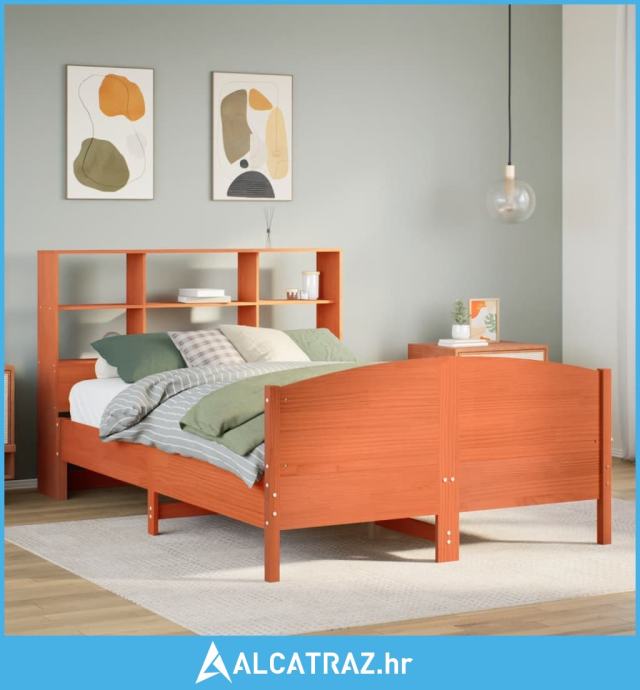 Krevet s regalom za knjige bez madraca 120 x 200 cm od borovine - NOVO