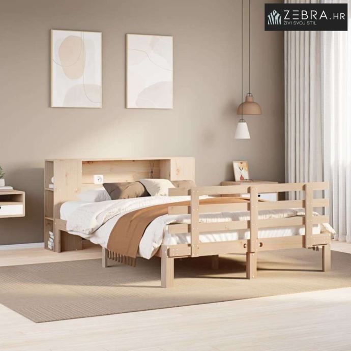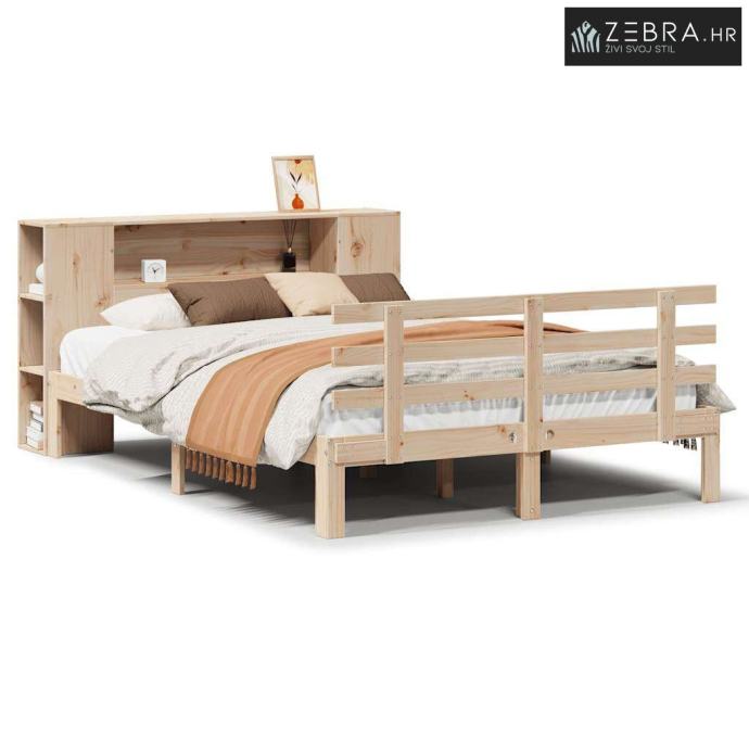 Krevet s regalom za knjige bez madraca 120x190 cm od borovine - Prirod