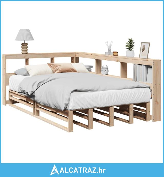 Krevet s regalom za knjige bez madraca 120x200 cm od borovine - NOVO