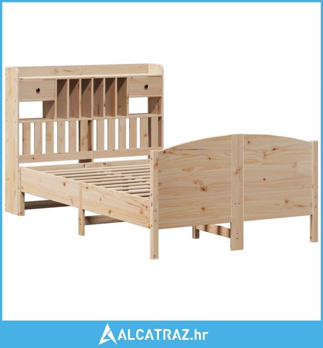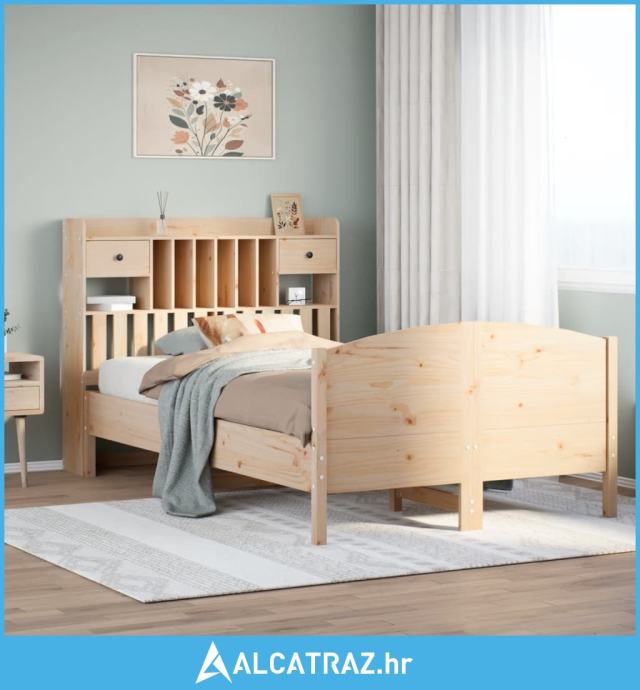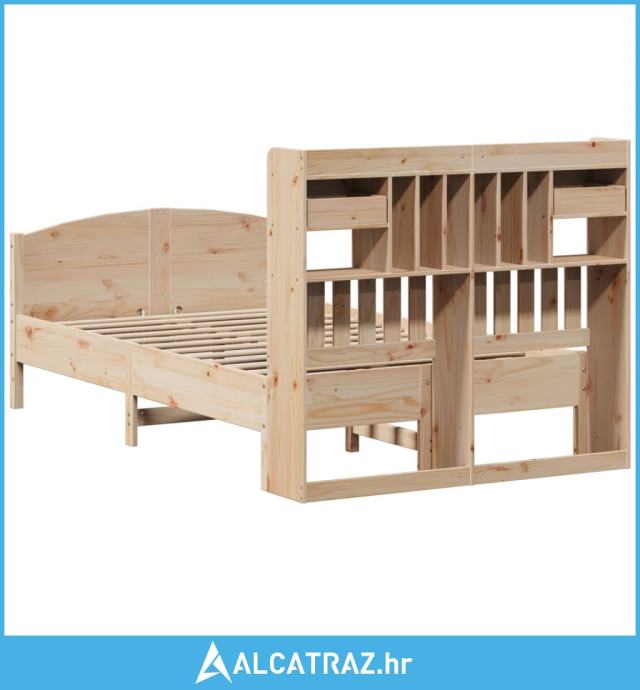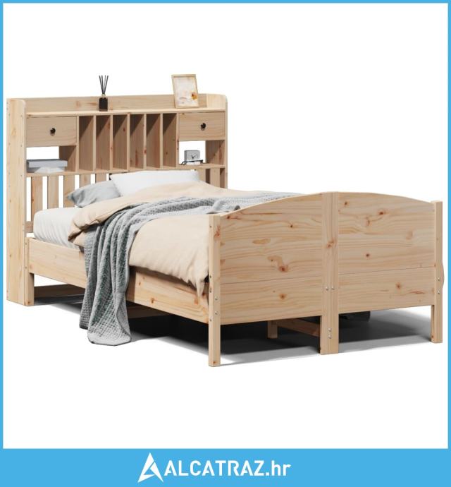 Krevet s regalom za knjige bez madraca 135x190 cm od borovine - NOVO