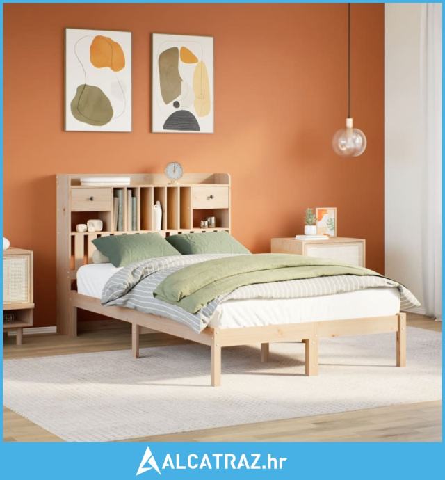 Krevet s regalom za knjige bez madraca 135x190 cm od borovine - NOVO