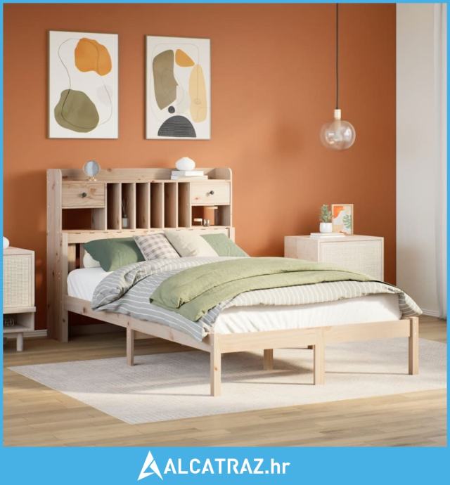 Krevet s regalom za knjige bez madraca 135x190 cm od borovine - NOVO
