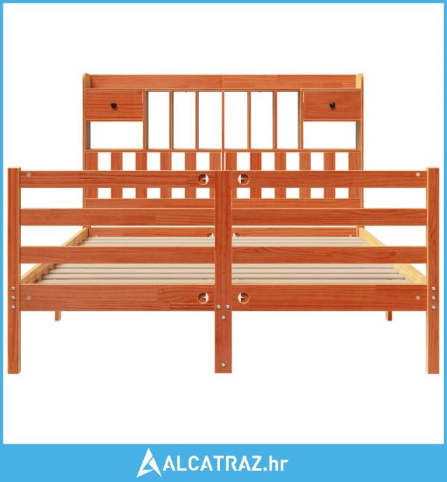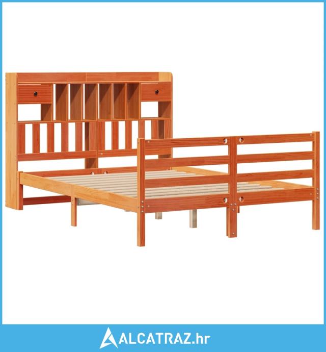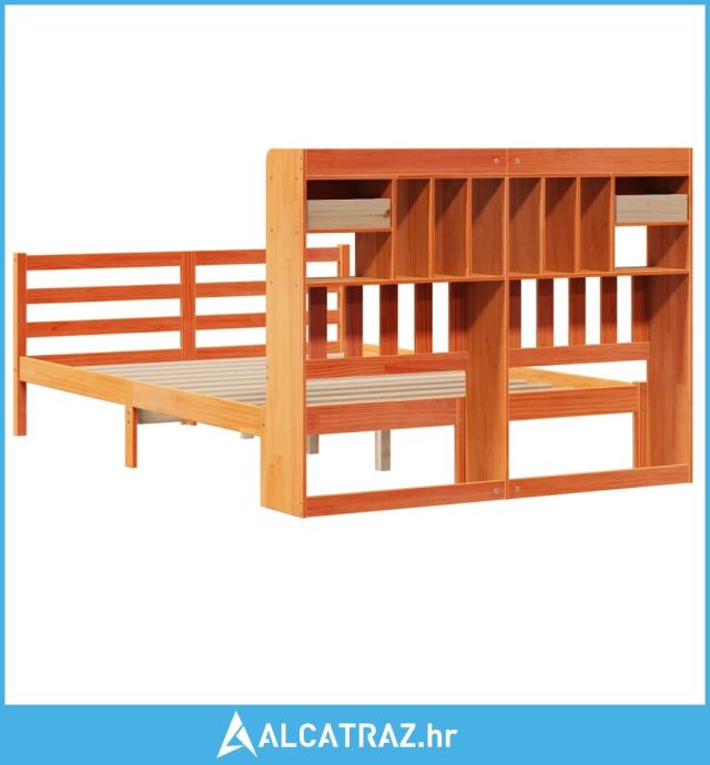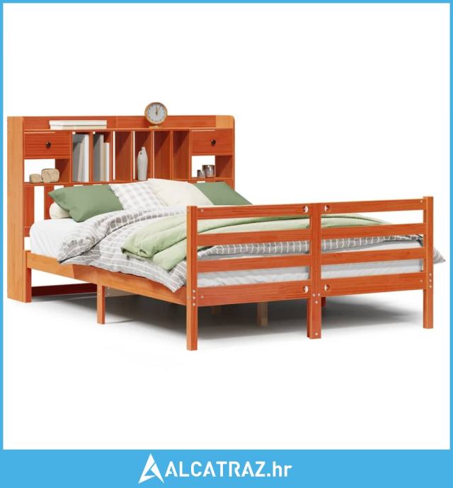 Krevet s regalom za knjige bez madraca 140 x 190 cm od borovine - NOVO