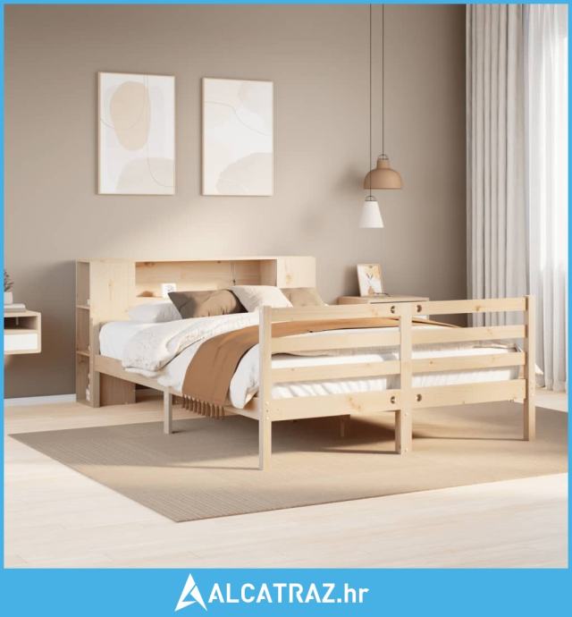 Krevet s regalom za knjige bez madraca 140x190 cm od borovine - NOVO