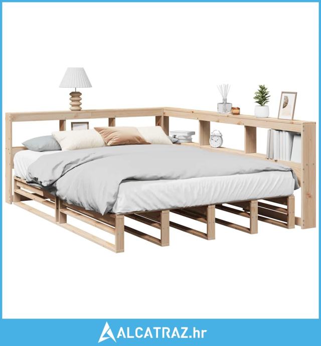 Krevet s regalom za knjige bez madraca 140x190 cm od borovine - NOVO