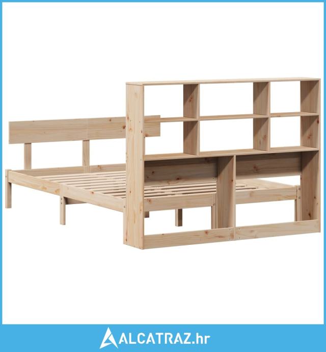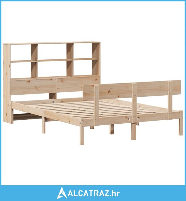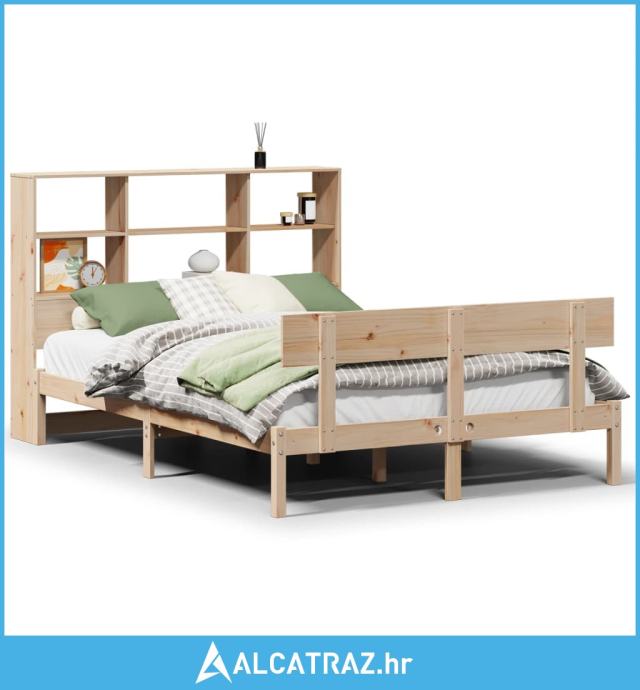 Krevet s regalom za knjige bez madraca 140x190 cm od borovine - NOVO