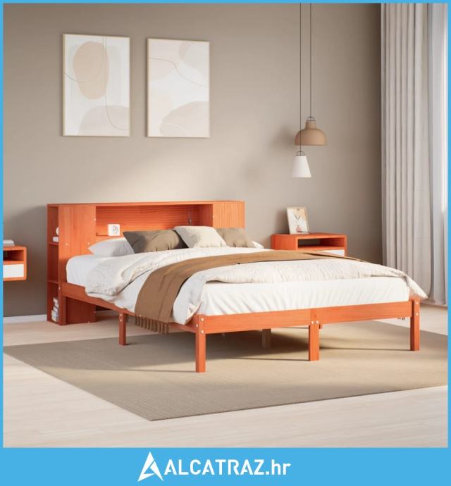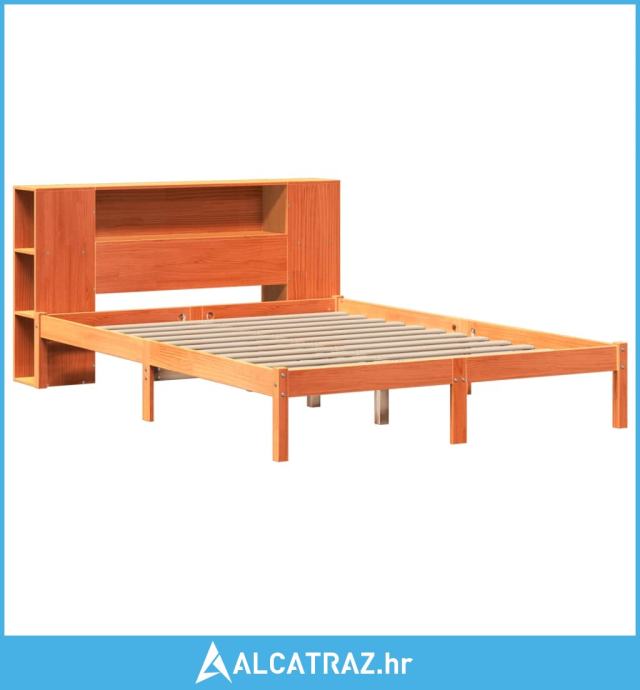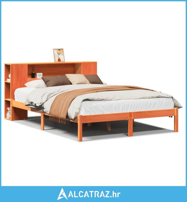 Krevet s regalom za knjige bez madraca 140x200 cm od borovine - NOVO