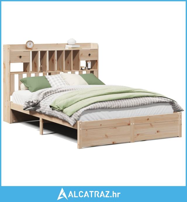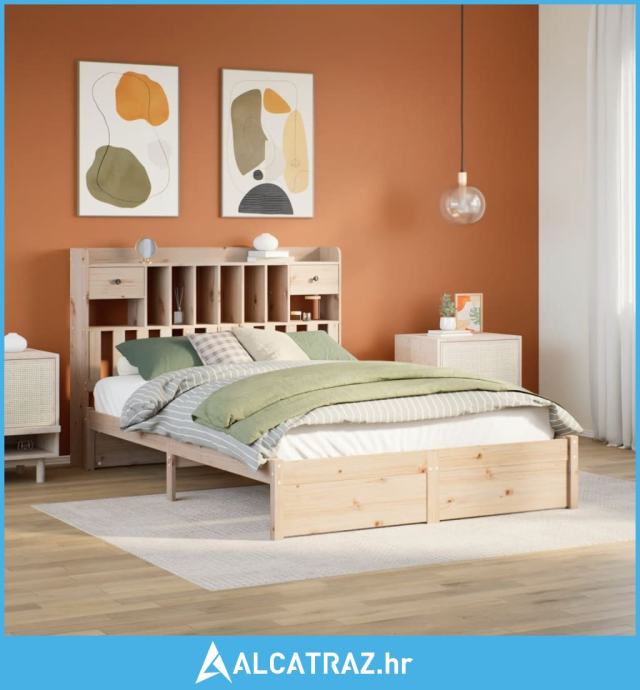 Krevet s regalom za knjige bez madraca 140x200 cm od borovine - NOVO