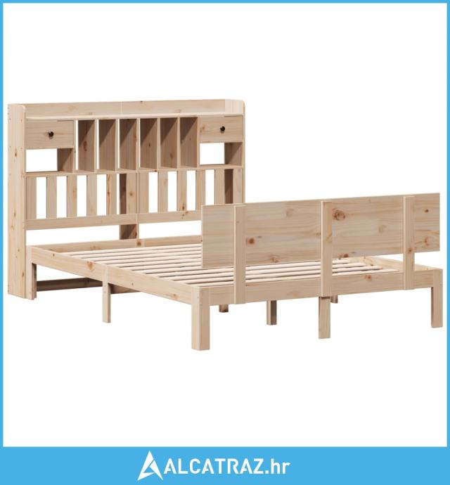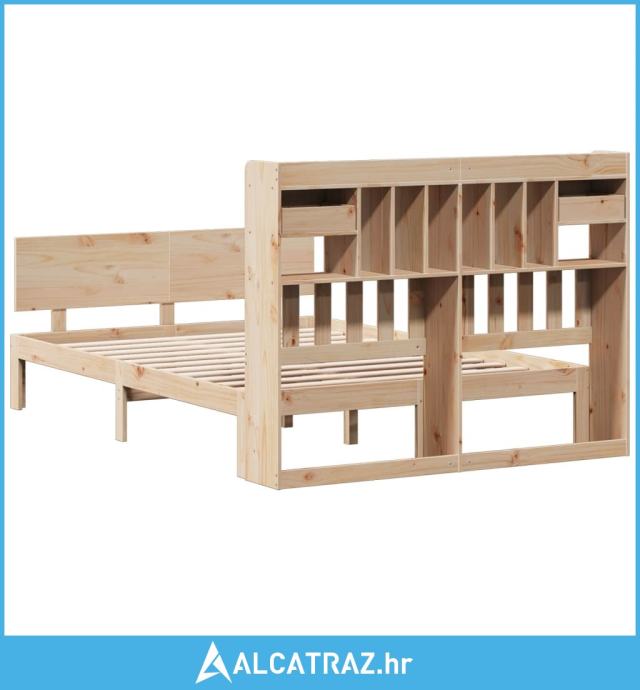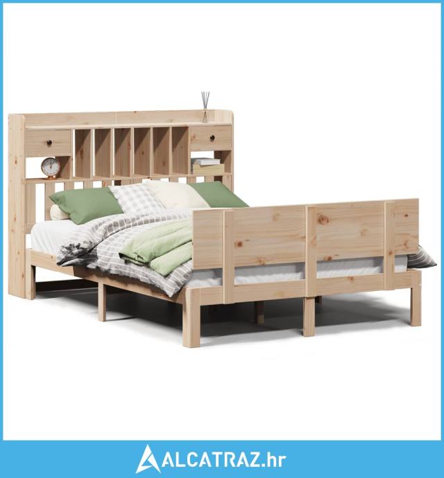 Krevet s regalom za knjige bez madraca 140x200 cm od borovine - NOVO