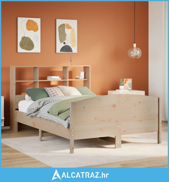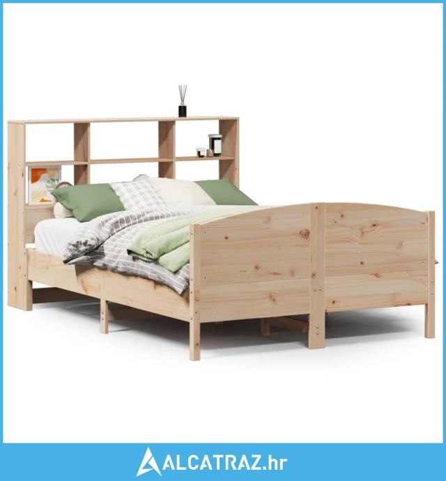 Krevet s regalom za knjige bez madraca 140x200 cm od borovine - NOVO