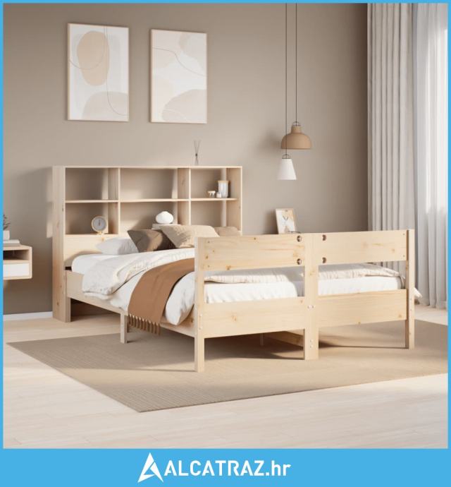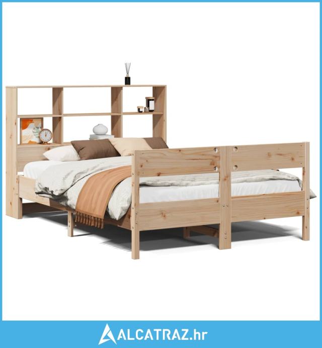Krevet s regalom za knjige bez madraca 140x200 cm od borovine - NOVO