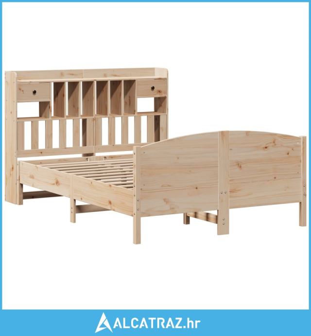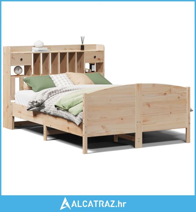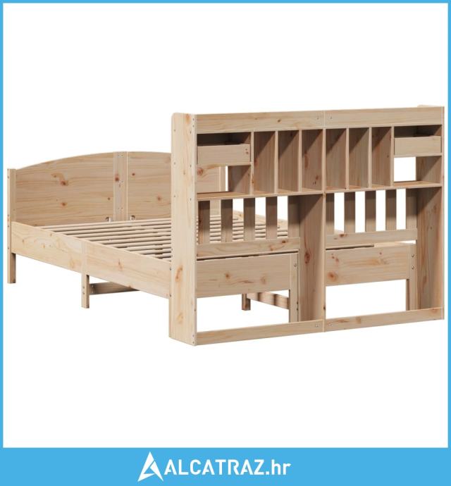Krevet s regalom za knjige bez madraca 150 x 200 cm od borovine - NOVO