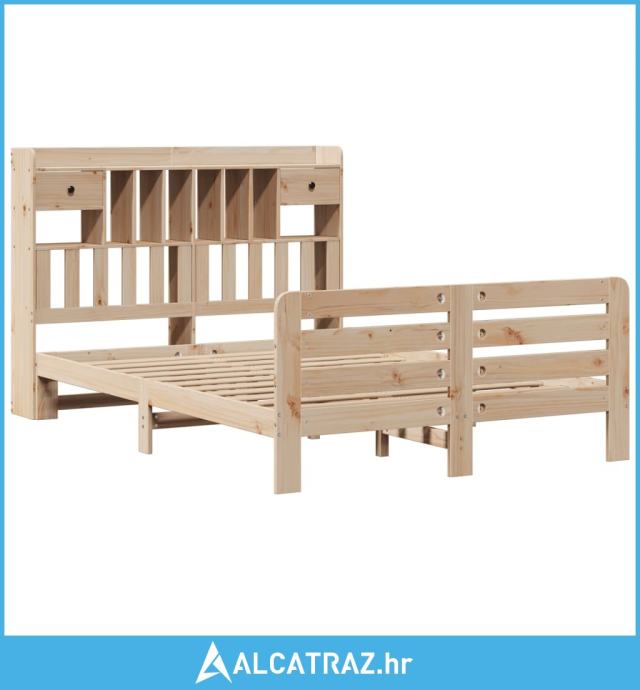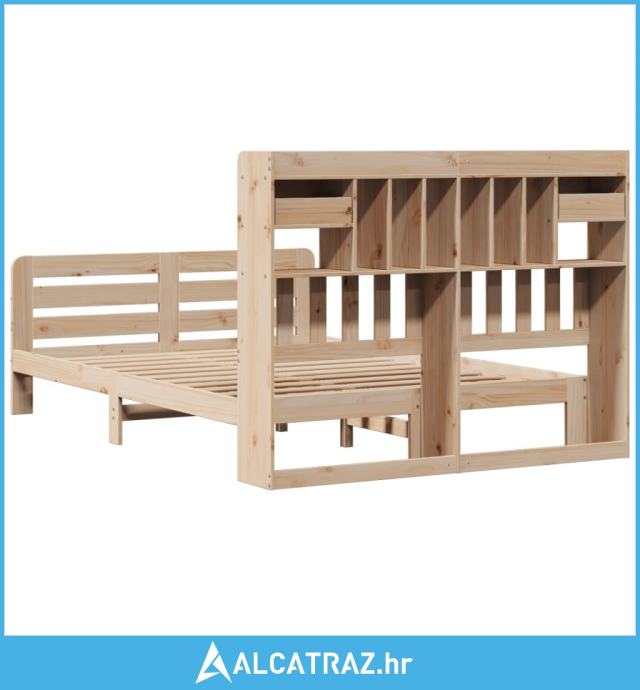Krevet s regalom za knjige bez madraca 150 x 200 cm od borovine - NOVO