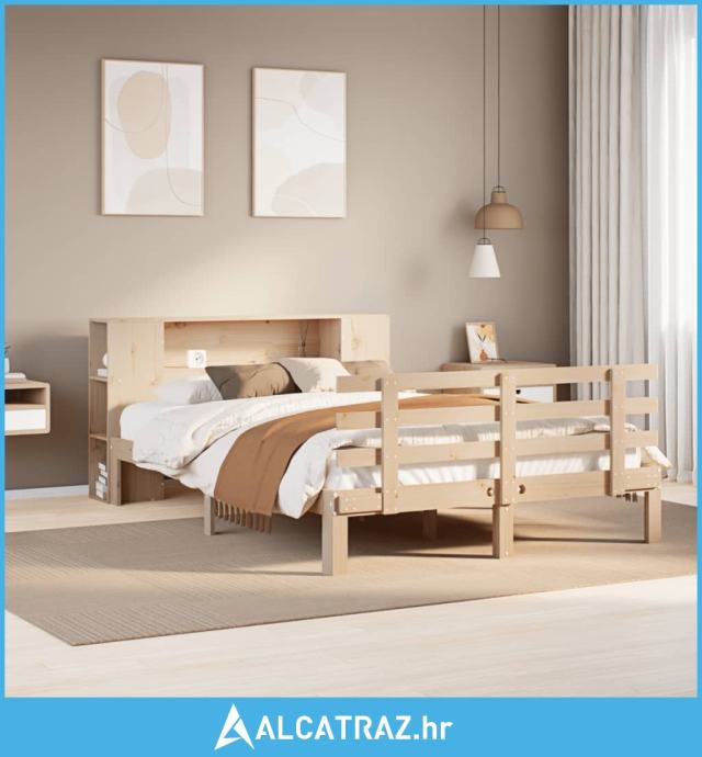 Krevet s regalom za knjige bez madraca 150 x 200 cm od borovine - NOVO
