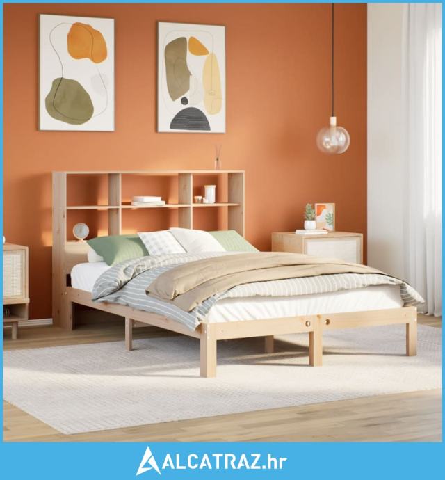 Krevet s regalom za knjige bez madraca 150 x 200 cm od borovine - NOVO