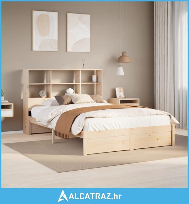 Krevet s regalom za knjige bez madraca 150 x 200 cm od borovine - NOVO