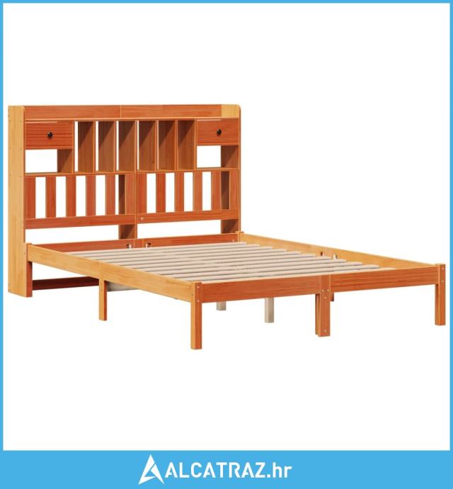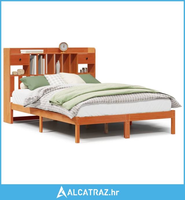 Krevet s regalom za knjige bez madraca 160x200 cm od borovine - NOVO
