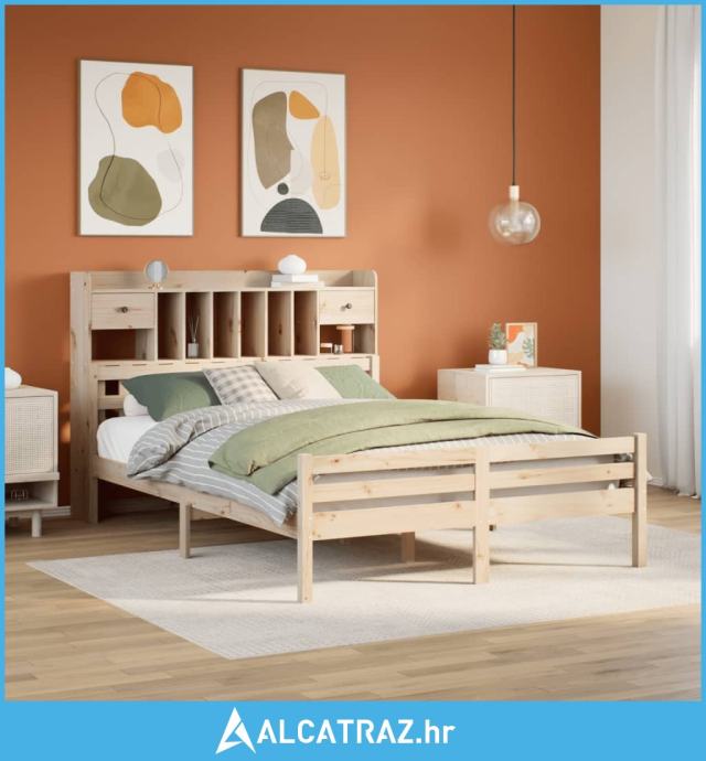 Krevet s regalom za knjige bez madraca 160x200 cm od borovine - NOVO
