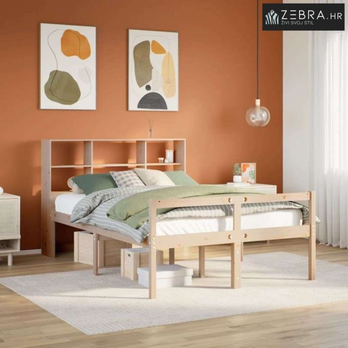 Krevet s regalom za knjige bez madraca 160x200 cm od borovine - Prirod