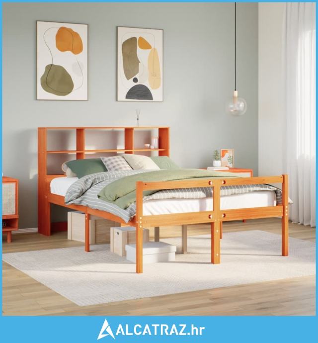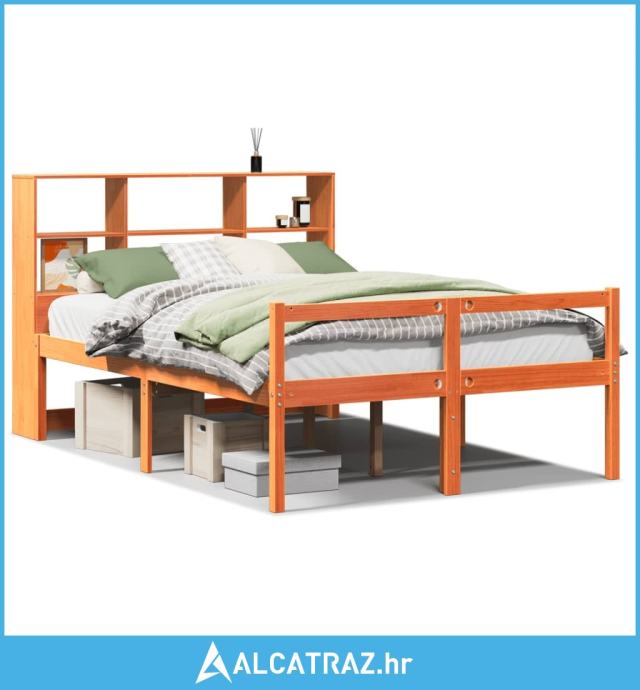 Krevet s regalom za knjige bez madraca 160x200 cm masivno drvo - NOVO