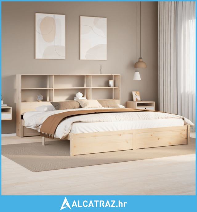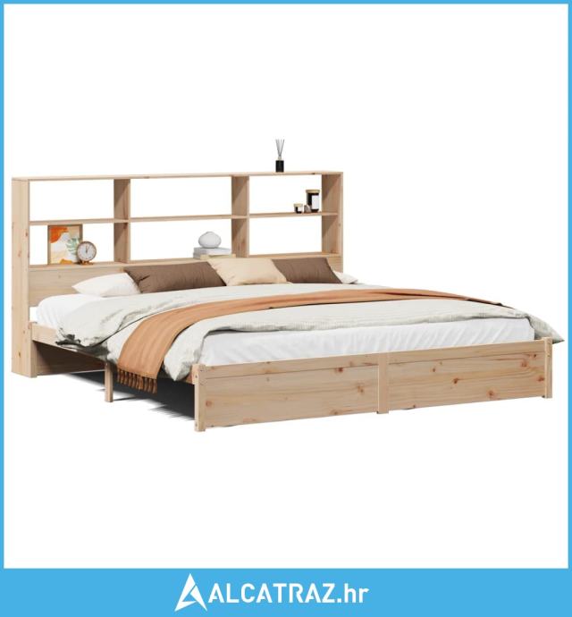 Krevet s regalom za knjige bez madraca 180x200 cm od borovine - NOVO