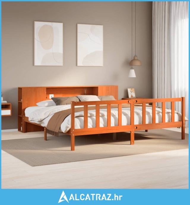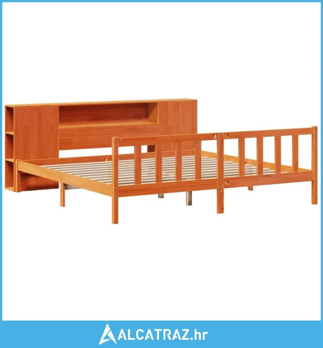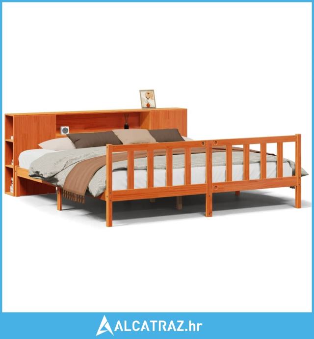 Krevet s regalom za knjige bez madraca 180x200 cm od borovine - NOVO